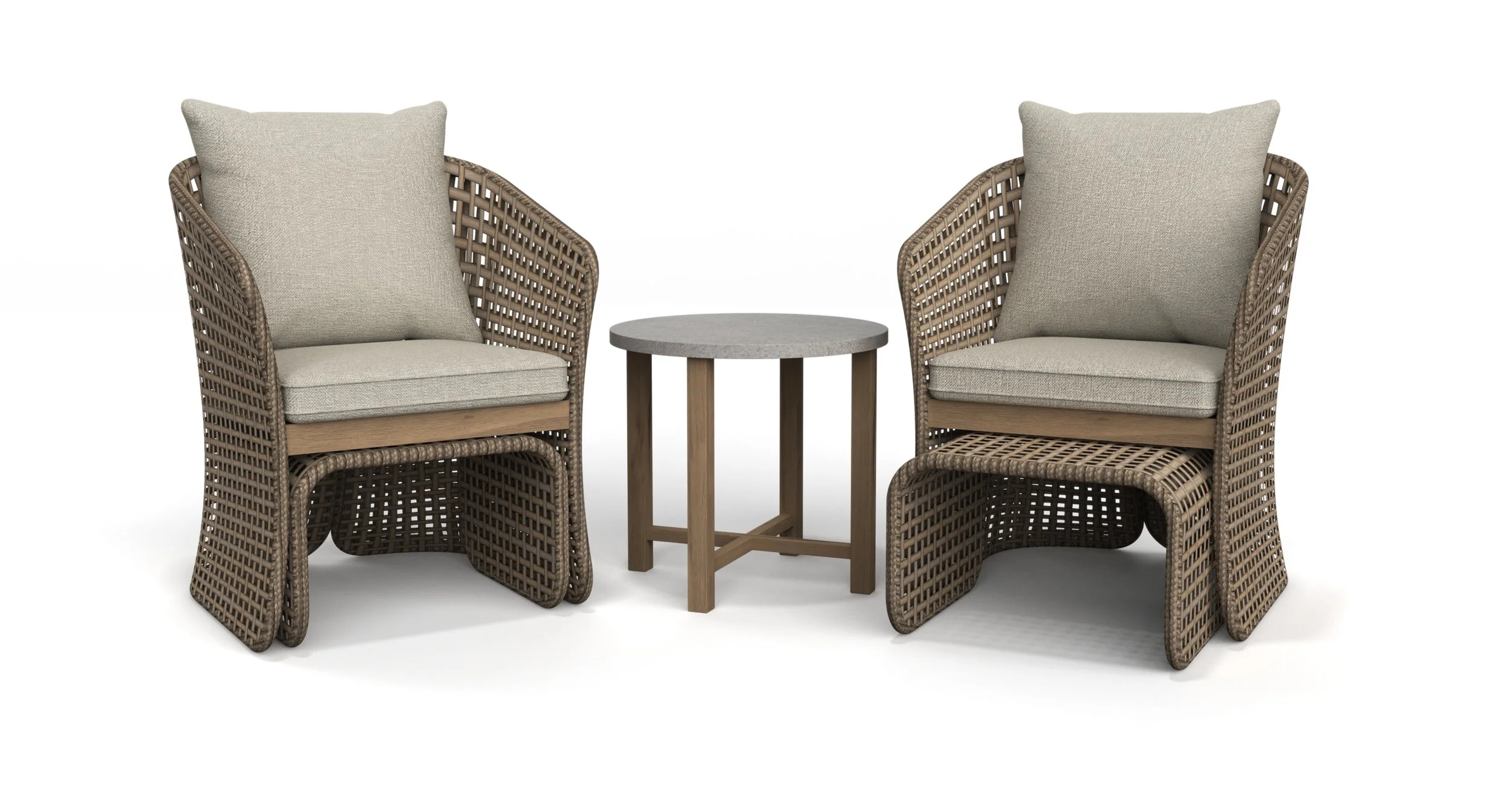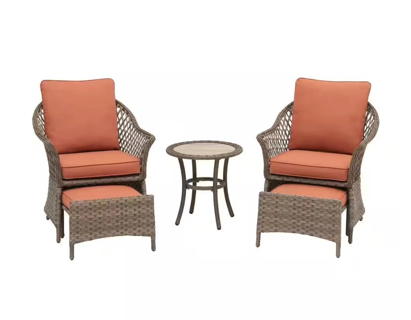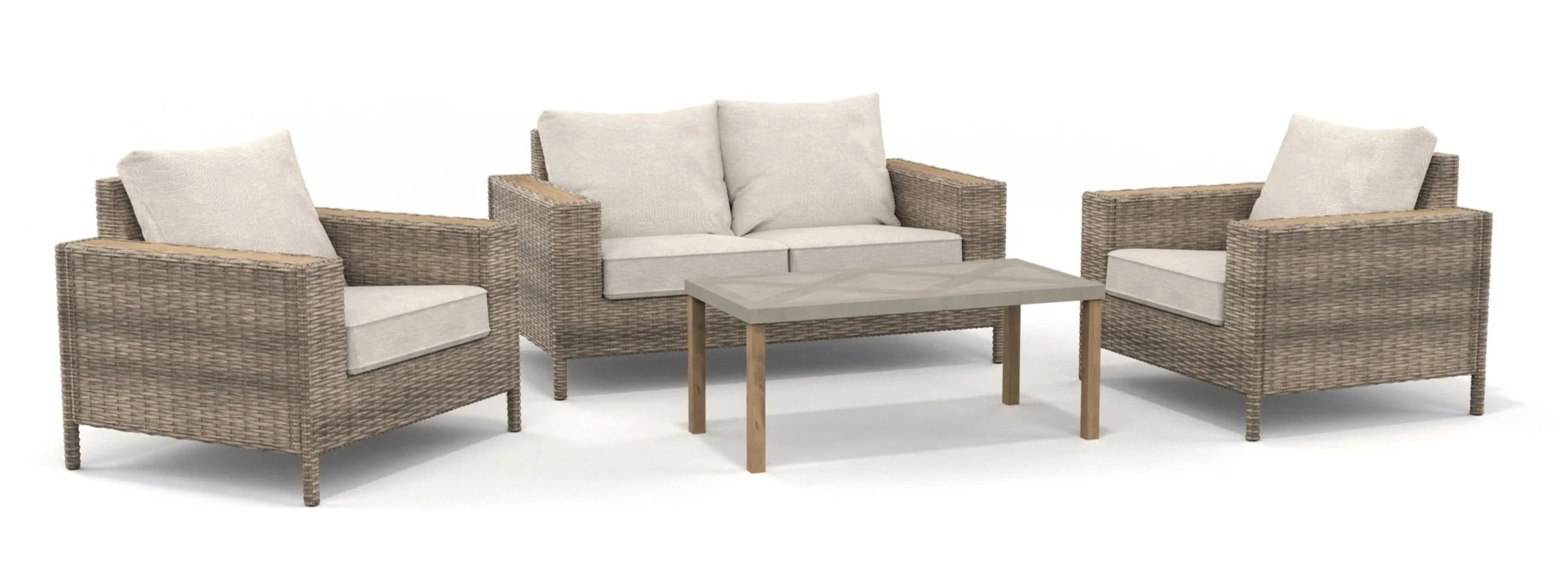 Home Depot was looking to refresh their inexpensive transitional 4-piece wicker patio conversation set. This popular set sits on the floor of a significant portion of their stores. In order to take this slot from the competition, the proposed set had to APPEAR MORE VALUABLE than the current offering while achieving a MORE COMPETITIVE PRICE and SMALL SHIPPING SIZE.