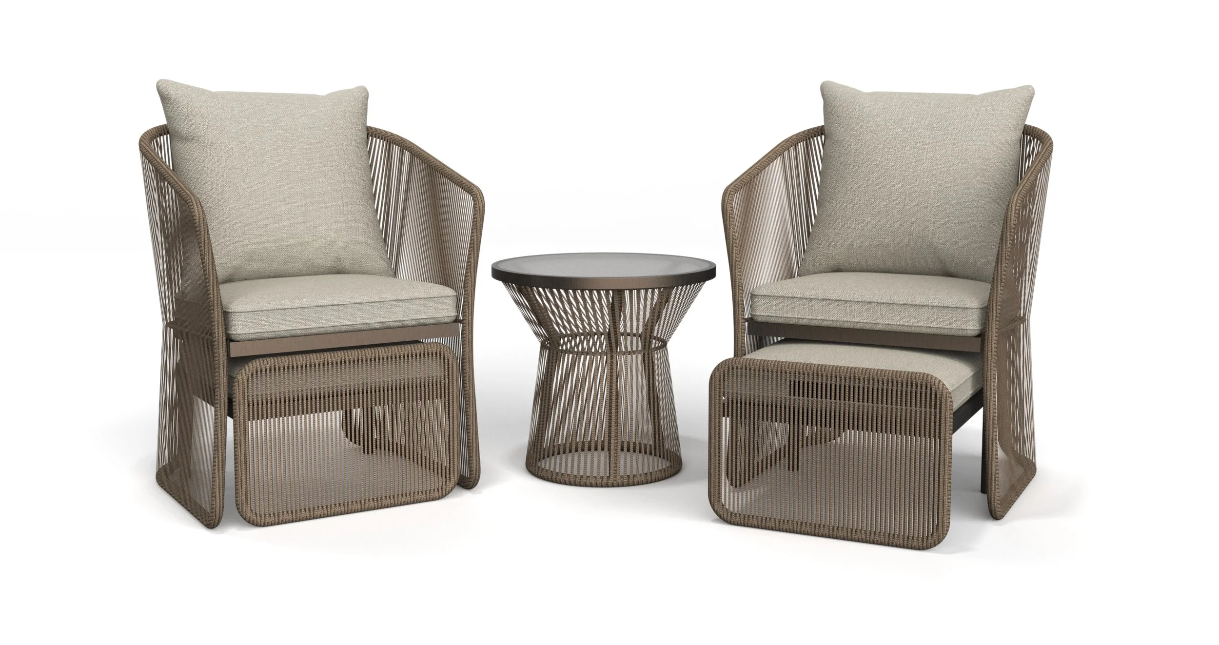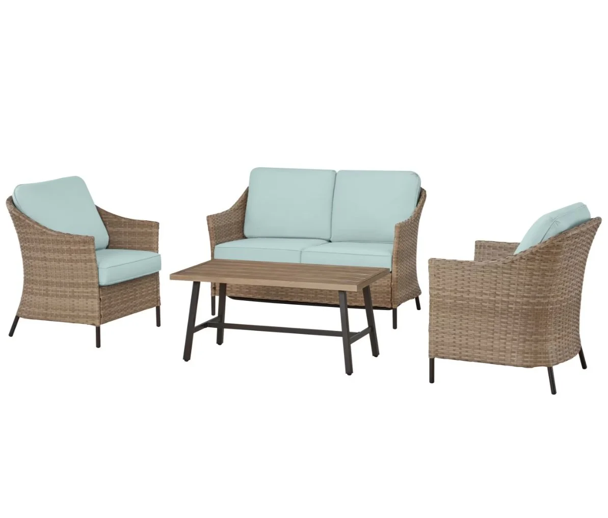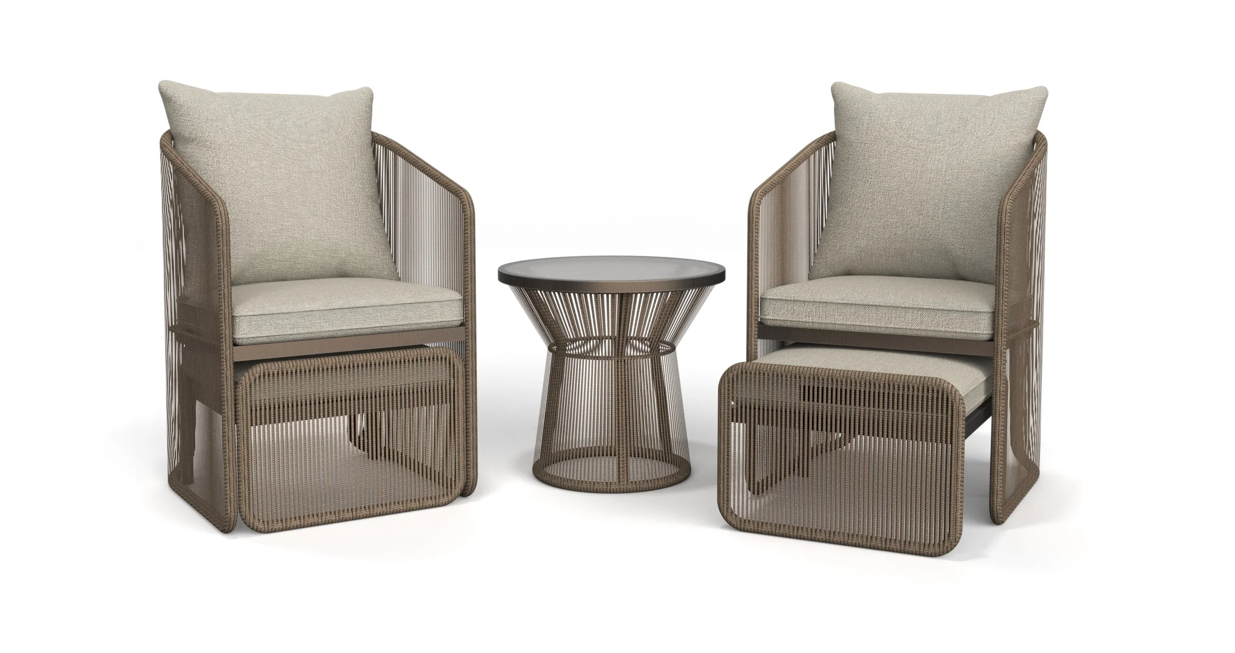 Home Depot was looking to refresh their inexpensive transitional 4-piece wicker patio conversation set. This popular set sits on the floor of a significant portion of their stores. In order to take this slot from the competition, the proposed set had to APPEAR MORE VALUABLE than the current offering while achieving a MORE COMPETITIVE PRICE and SMALL SHIPPING SIZE.